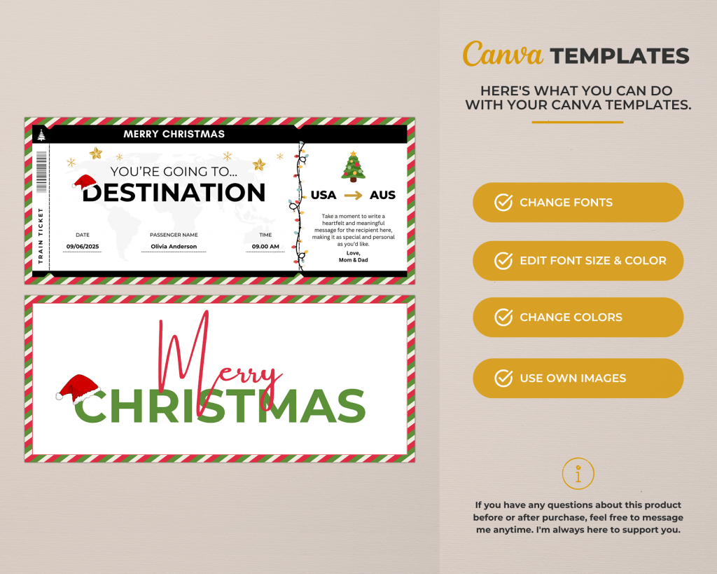 This Canva template is perfect for gifting a trip or a special event in a creative and stylish way. Simply download, edit in Canva, and personalize it as you like – ideal for birthdays, anniversaries, or surprise getaways.